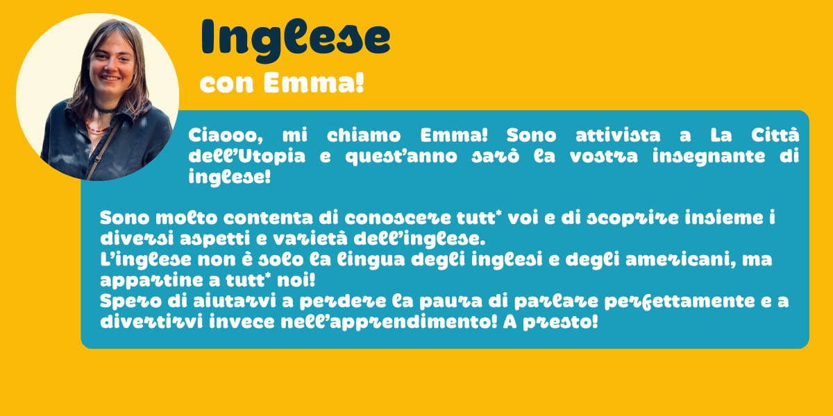 La Città dell’Utopia è uno spazio multiculturale, dove abitano volontar* di diversi paesi. Normalmente, quest* volontar* diventano anche insegnant* di corsi della loro madrelingua. Perciò, l’elenco dei corsi di lingua de La Città dell’Utopia tende a cambiare ogni anno.